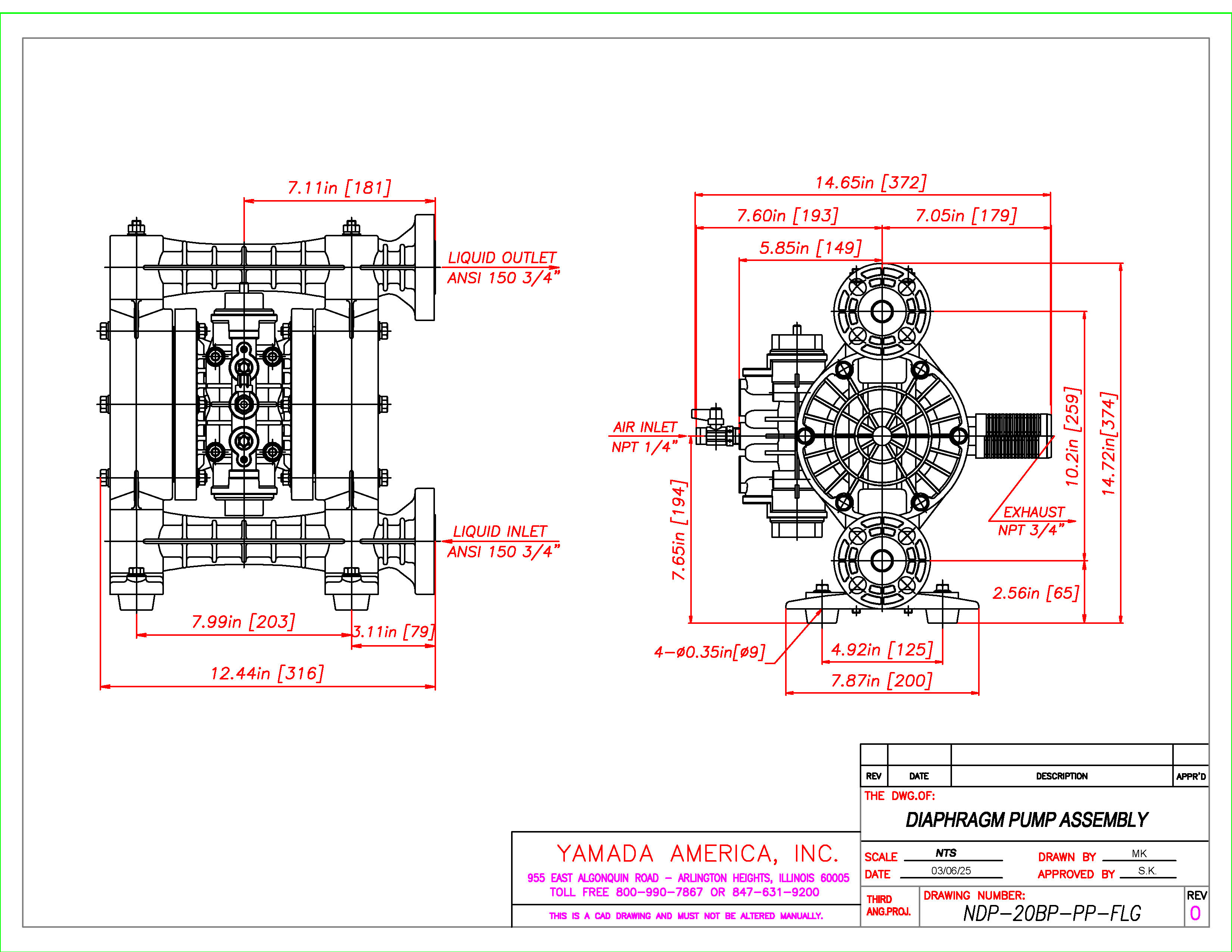 Yamada® NDP-20 series AODD pumps provide a maximum flow rate of 31.7 gallons per minute. Pumps are available in aluminum, stainless steel (316), and polypropylene construction, with a wide variety of diaphragm materials.