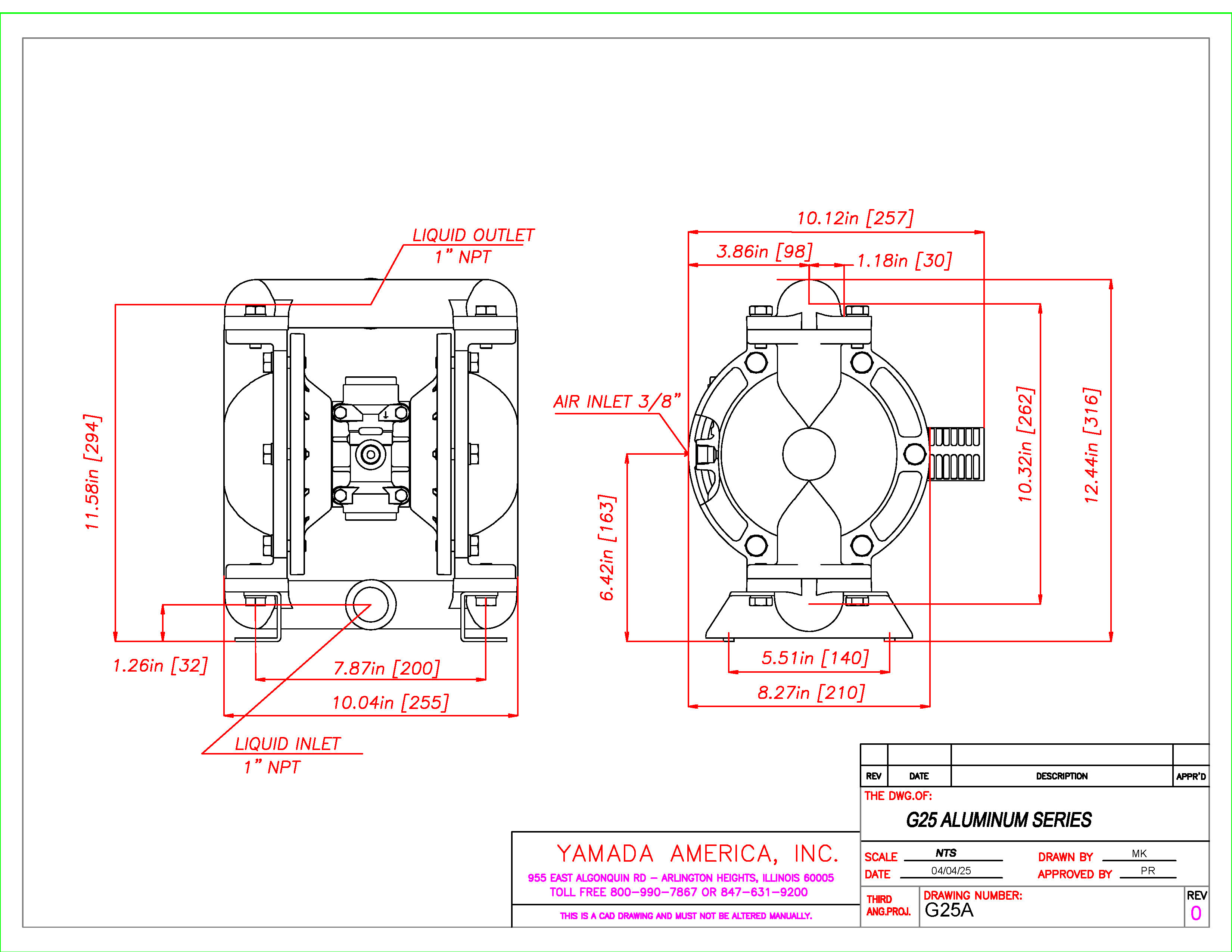 Yamada® G25 Global Series AODD pumps provide a maximum flow rate of 40.1 gallons per minute and are available in aluminum.