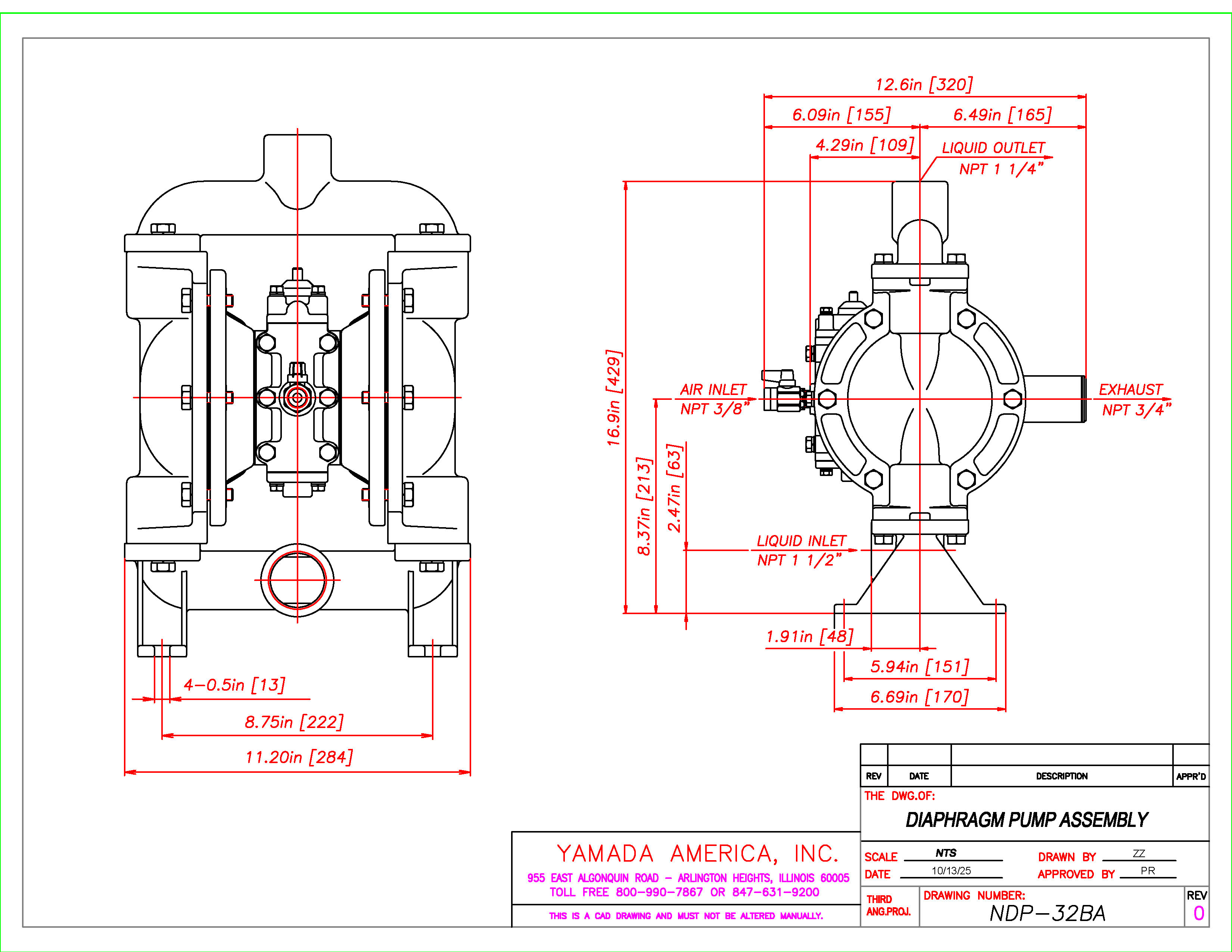 Have you ever wanted to switch out your old pump for a Yamada®, but faced re-piping issues? With the NDP-32 Pump from Yamada, your problems are solved. This 1-1/2” inlet port x 1-1/4” outlet port matches up dimensionally with old competing brand’s designs. Now your conversion to Yamada is just a little bit easier.