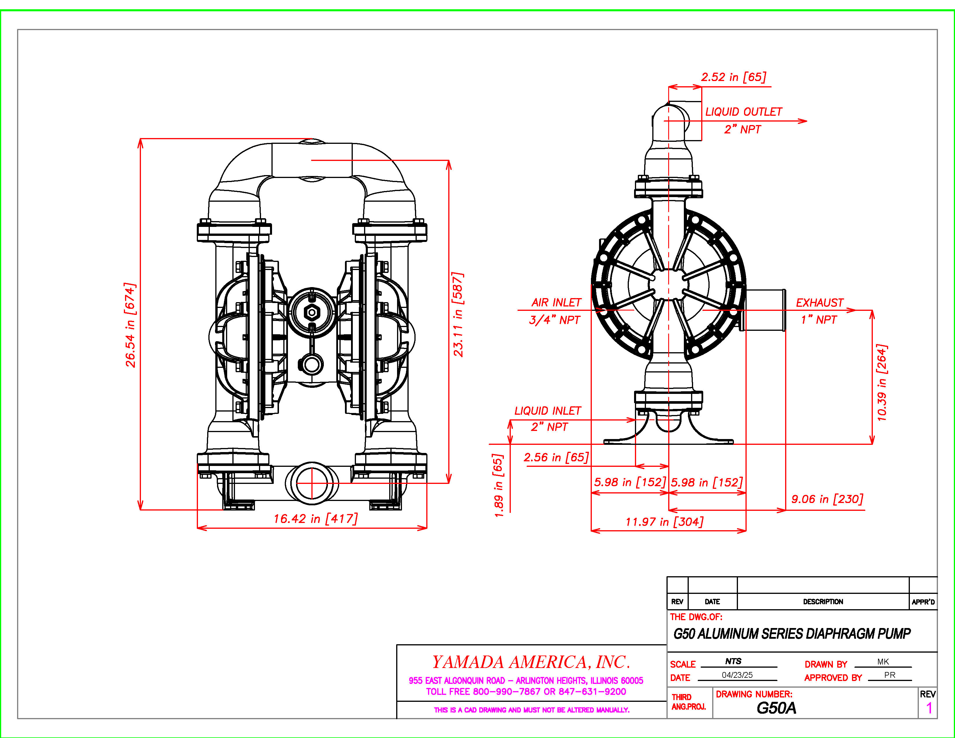 The G50 global series rounds out the Yamada AODD pump offerings, providing a maximum flow rate of 193 gallons per minute and is currently available in aluminum construction.