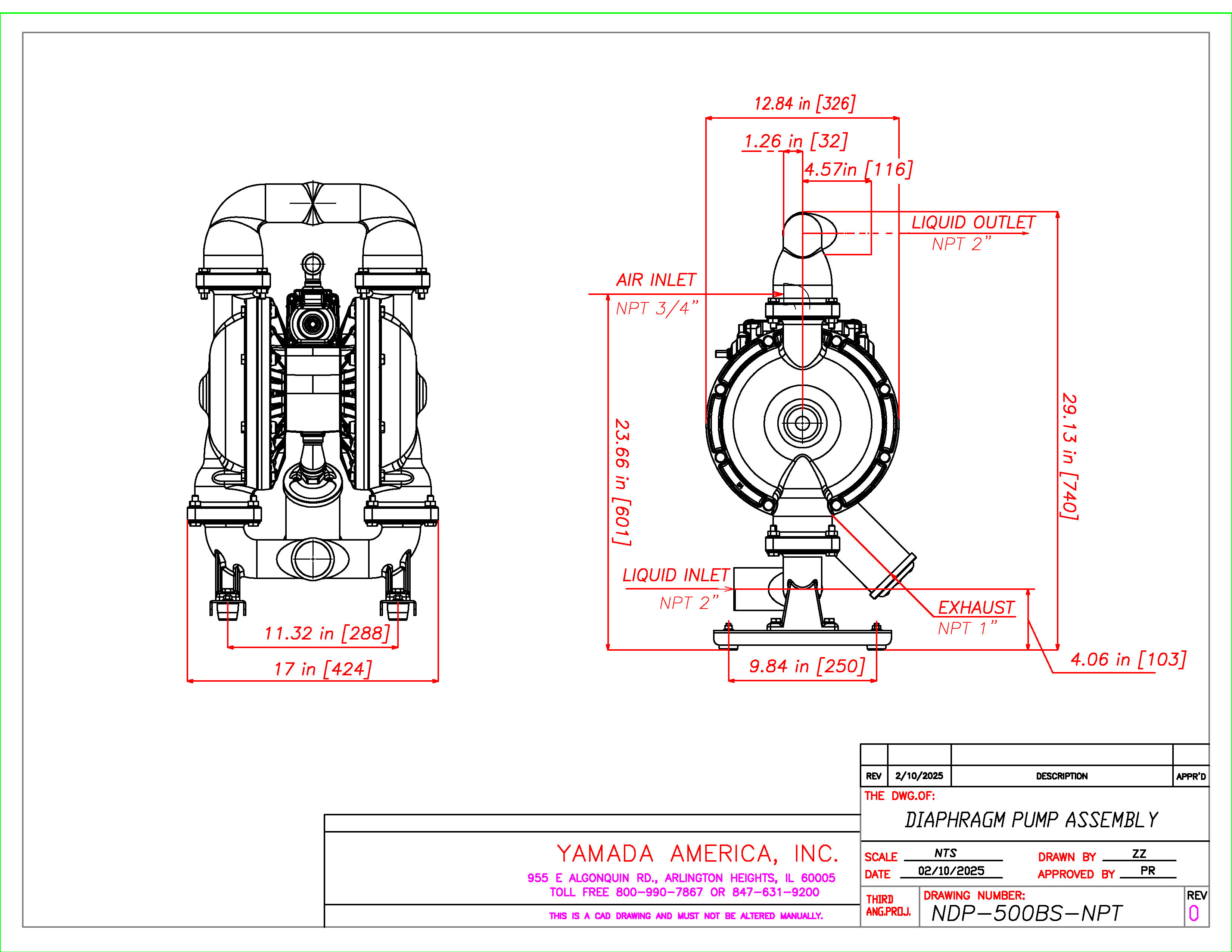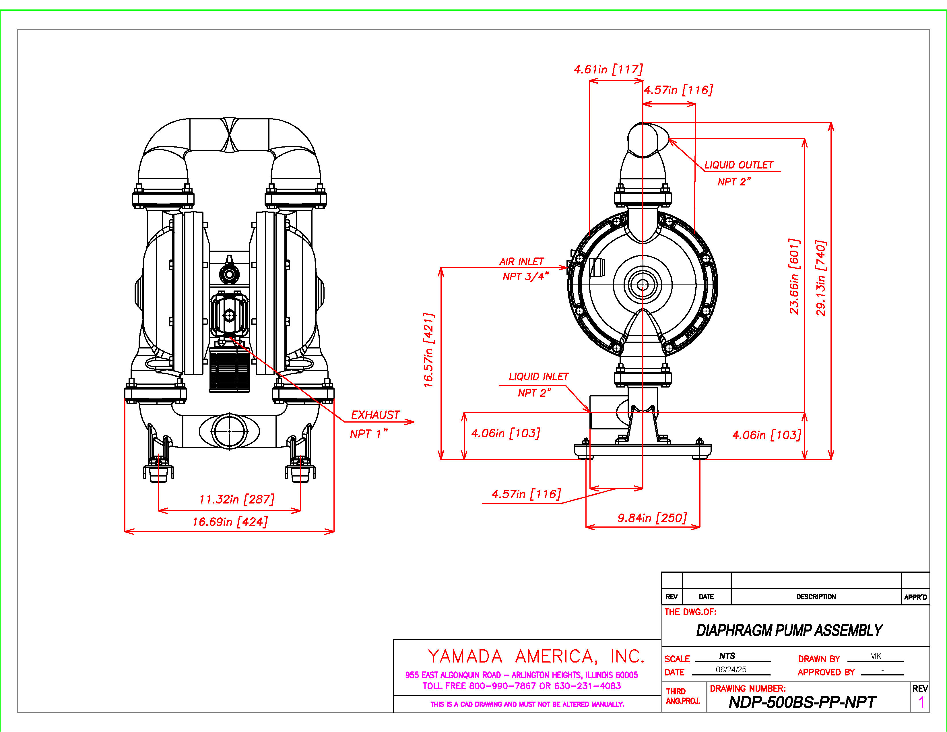 Yamada offers a range of air-operated double diaphragm (AODD) pumps designed for various applications, with the NDP-500 series leading the way in performance. The NDP-500 series boasts a flow rate of 226 gallons per minute and is currently available in 316 stainless steel.